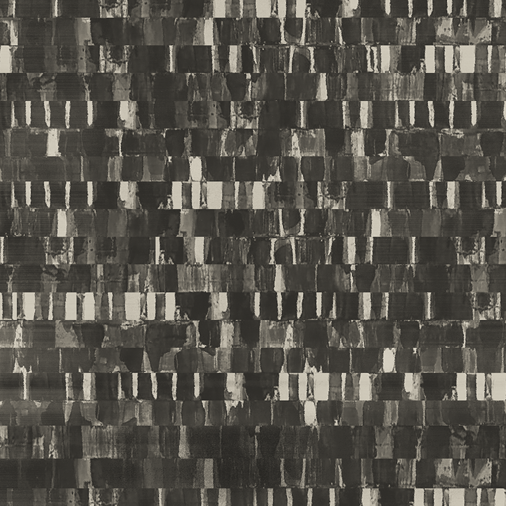 This abstract composition captures the rhythmic pulse of an urban landscape after dark. Through a textured, grid-like arrangement of charcoal, slate, and bone-white strokes, the piece evokes the flickering glow of apartment windows and streetlamps reflecting off rain-slicked pavement. The intentional blurring and layered horizontal bands create a sense of motion and mechanical energy, mirroring the restless, beautiful static of a city that never truly sleeps.